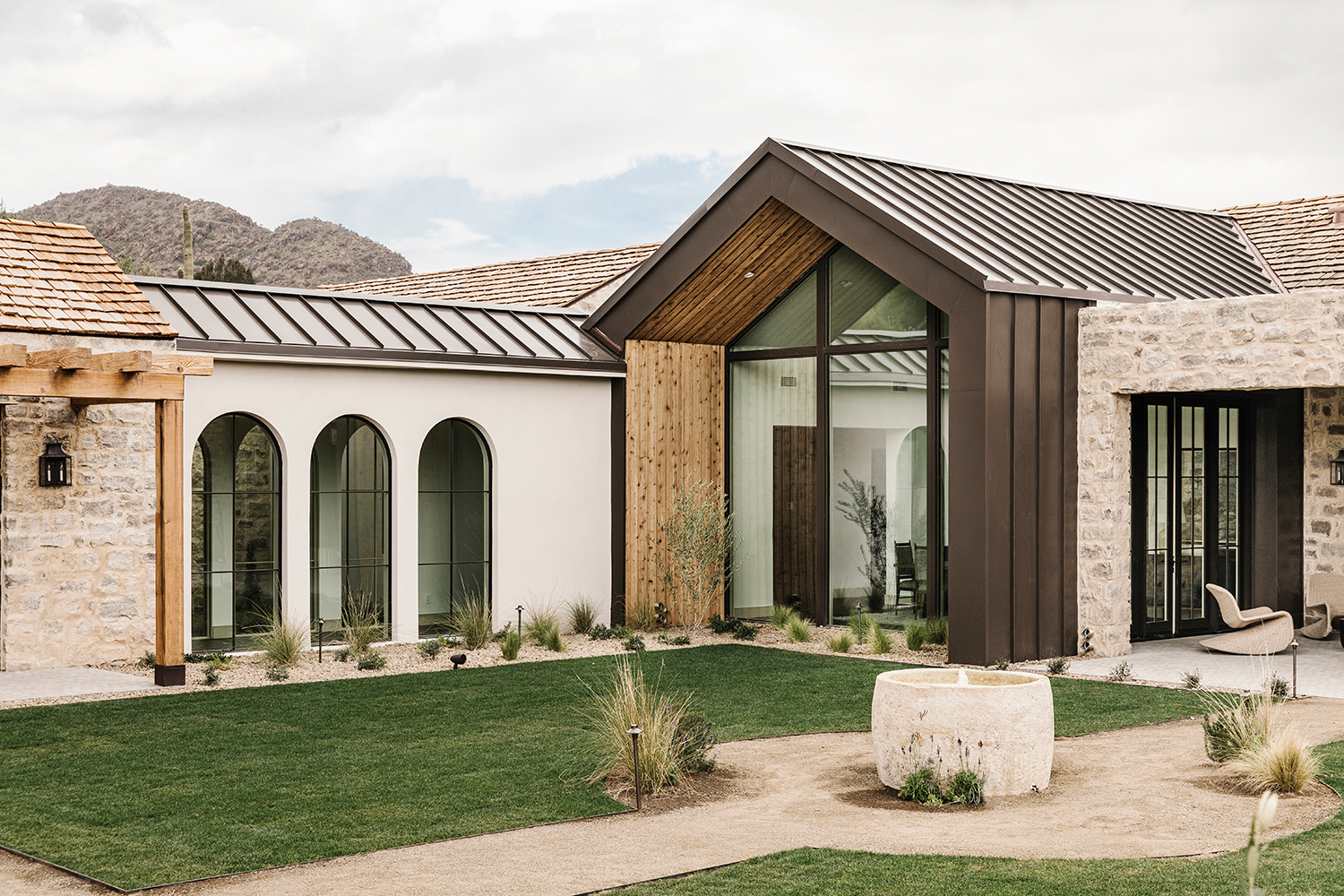 Tucked away inside the exclusive Torreon gated community in Show Low, Arizona, Arrowcreek Lodge is a luxurious private retreat that seamlessly blends rustic charm with refined design. Vaulted ceilings with natural wood beams create an airy mountain ambiance, while stone and timber details flow effortlessly from exterior to interior. The home’s warm, organic palette is beautifully grounded by Creative Mines Whitegold, Orchard Limestone, adding luminous texture and timeless elegance to this serene forest escape.